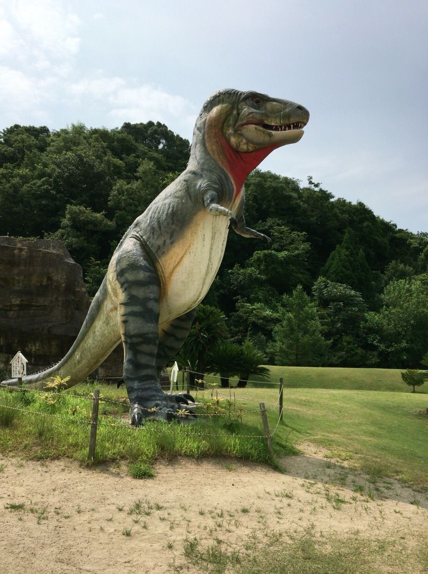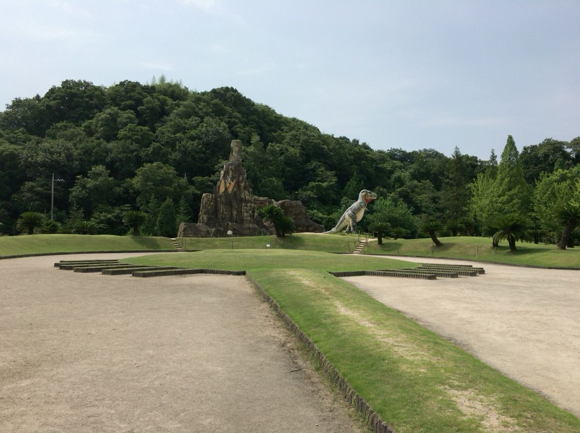 山の中にちょっと大きめな公園のような場所がポッカリとあり、そこに巨大な恐竜のオブジェが飾られている場所・・・それがカブトガニ博物館でございます。