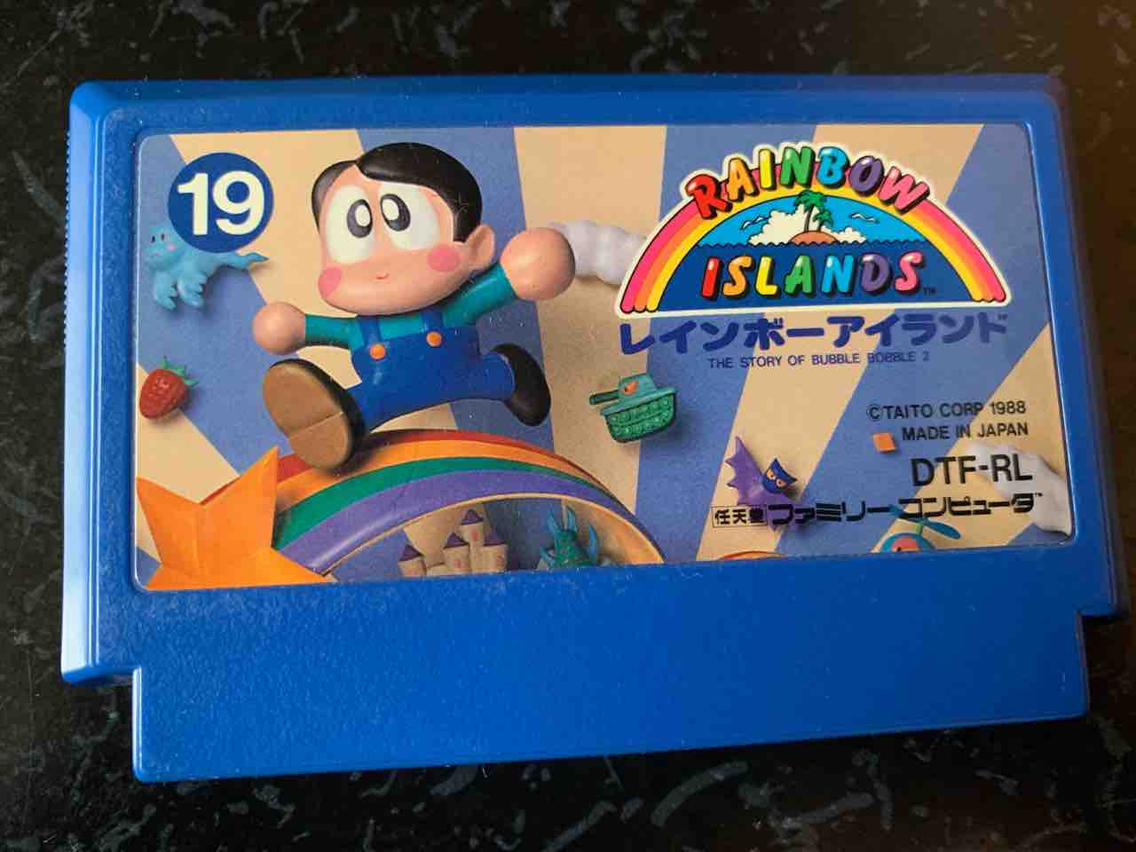 まず「れ」は『レインボーアイランド』!1987年にアーケードで稼働した名作アクションゲームのファミコン向け移植作です