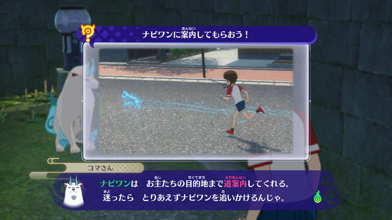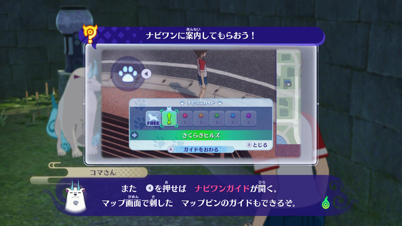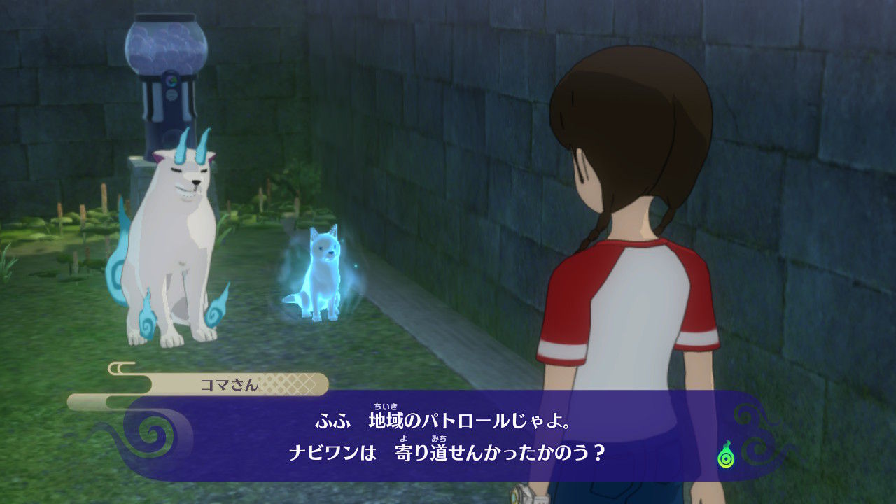 ケータも出会った青い犬についていくと、「シャドウサイド」側のコマさんと出会うことができたよ。コマさんの部下的な立場だったんだね。名前は「ナビワン」らしいです