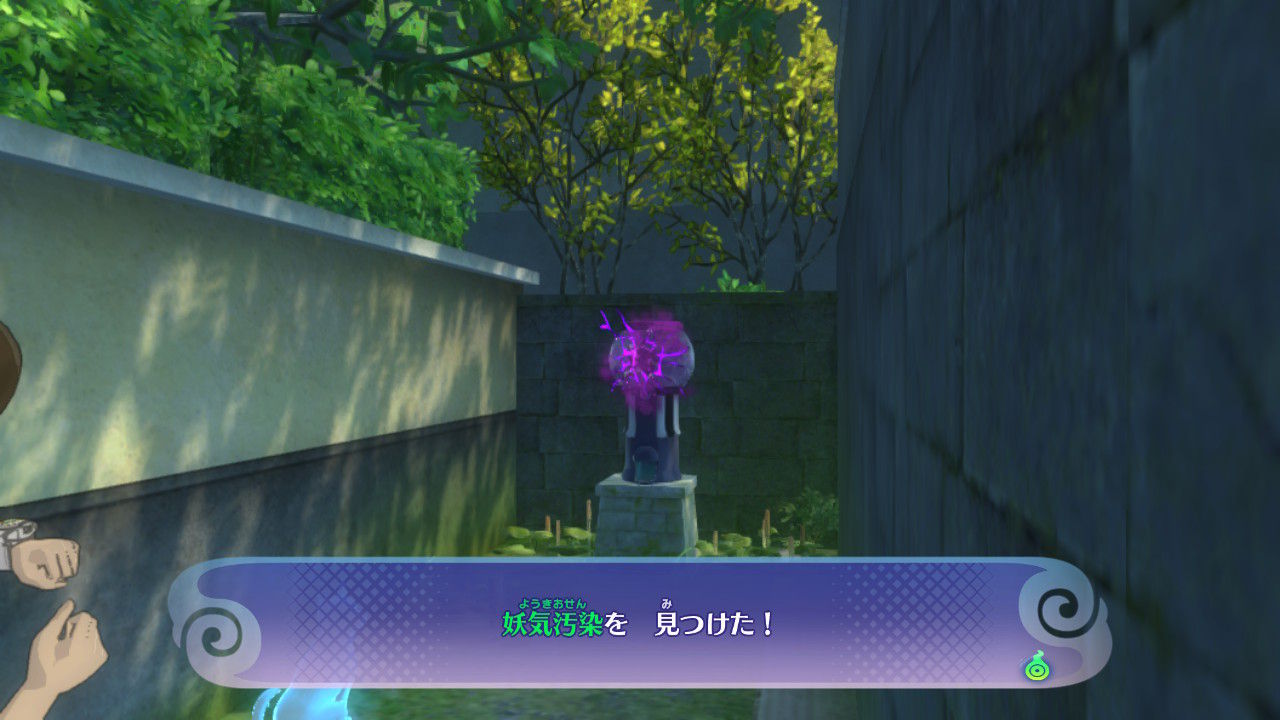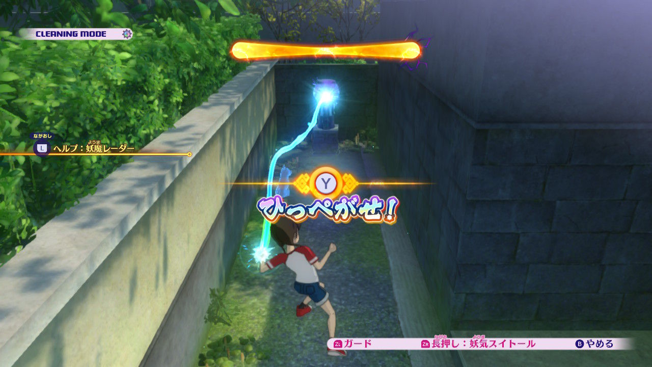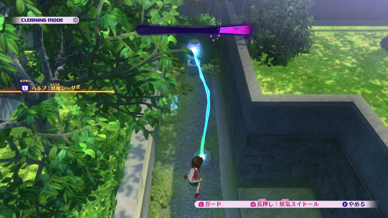 妖気汚染は「妖気スイトール」を使って引き離すことが可能。汚染からダメージを受ける光も流れてくるけど、タイミングよくガードすればカウンターできるよ