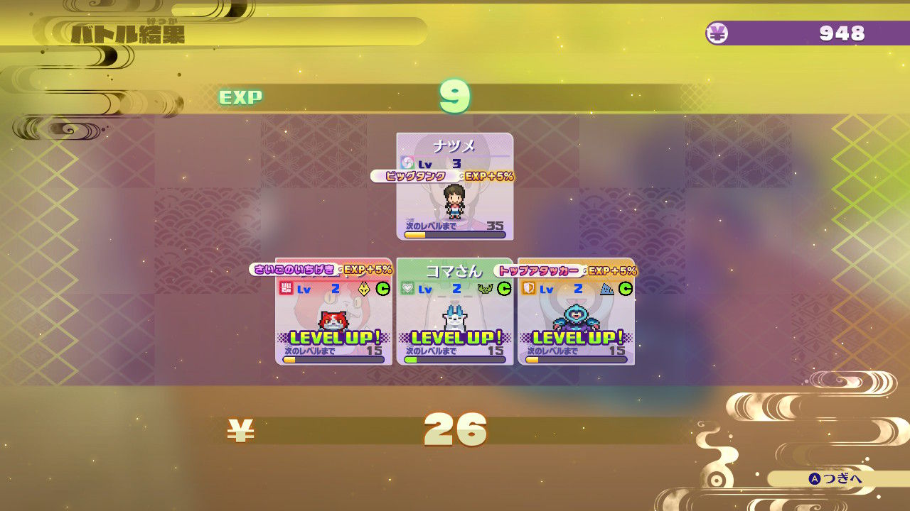 住人を困らせているという妖怪をこらしめることで報酬ももらえるし、倒した妖怪はともだちになってくる場合もある・・・って流れか。こんなカンジでどんどんパーティを充実させていきたいね