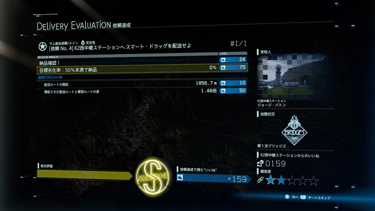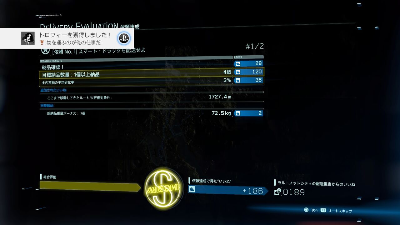 目的地まで無事に辿り着いて荷物を納品すればミッション達成。荷物の損傷具合などによって評価が変化するようだね。基本はこれだけです