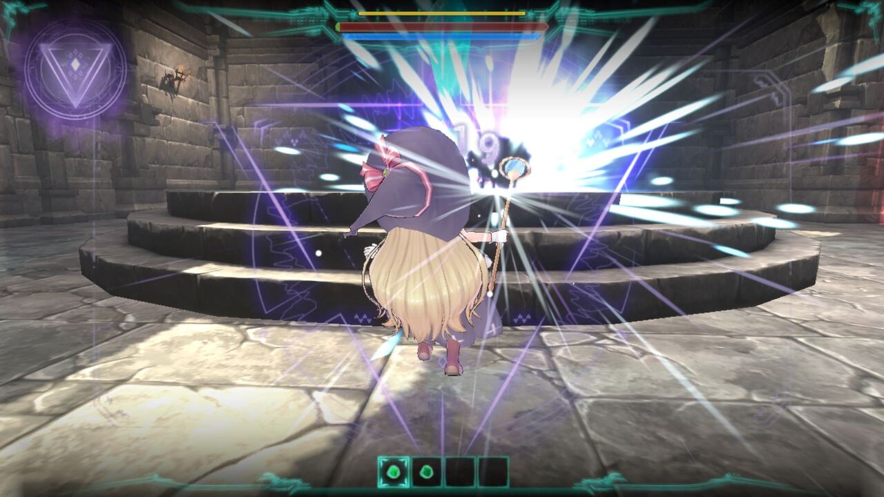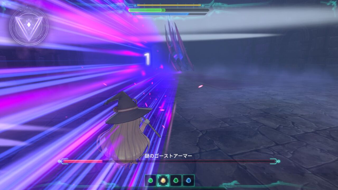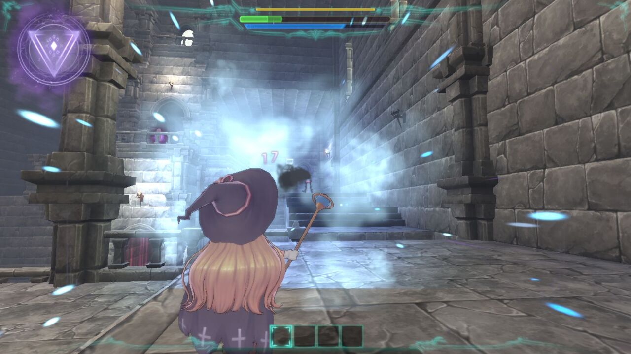 基本的には標準をあわせて敵に向かって魔法のビームを撃って攻撃していくカンジ。魔力が切れたら杖で殴って回復させる必要もあったりするよ