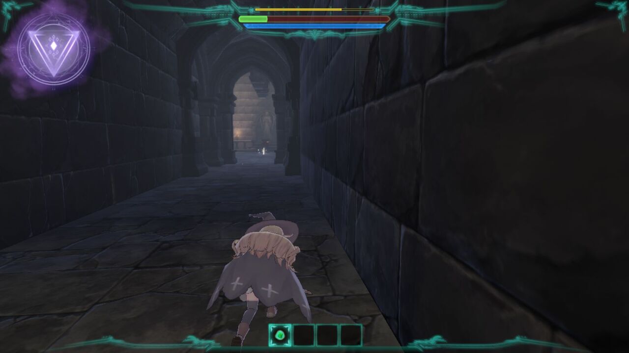 主人公はこのいかにもロリロリしい魔女っ娘「ノベタ」。この子が遺跡を冒険しながら恐ろしい怪物との戦いに身を投じていくことになるよ・・・!