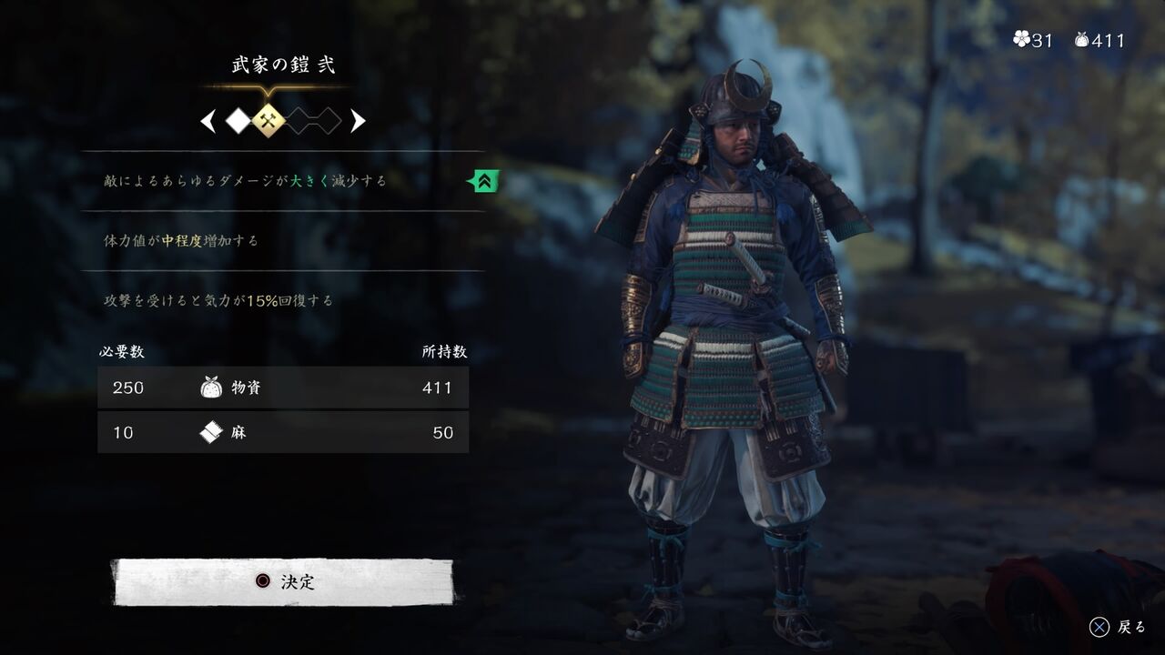 ちなみにここまで集めてきた素材アイテムにより、鎧と短刀を強化することもできました。さらに戦力アップ!