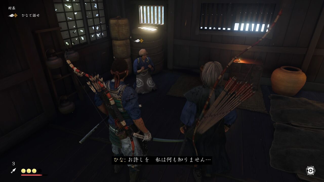 悪漢どもを蹴散らして家に押し入ってみたものの、村長の姿はすでになく、奥さんだけがいる状態・・・ヤツめ、逃げやがったな
