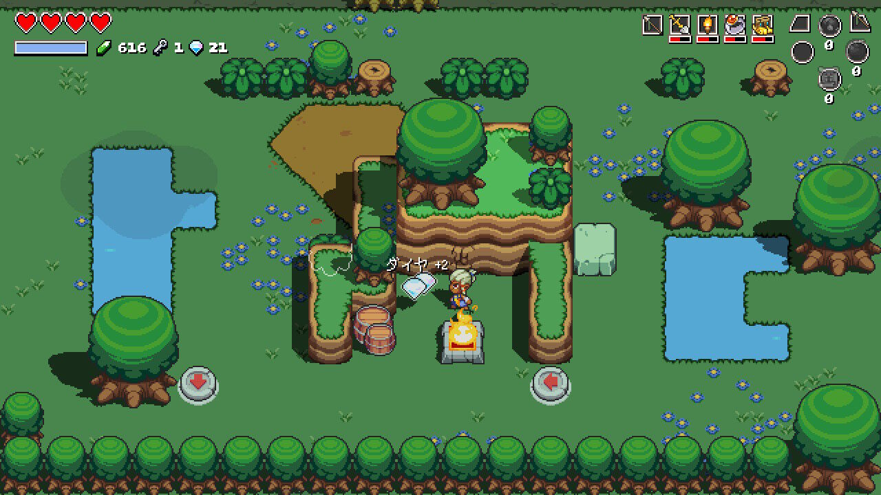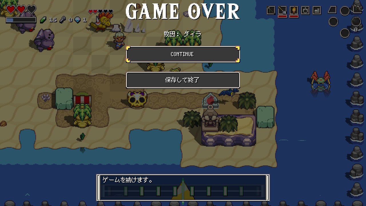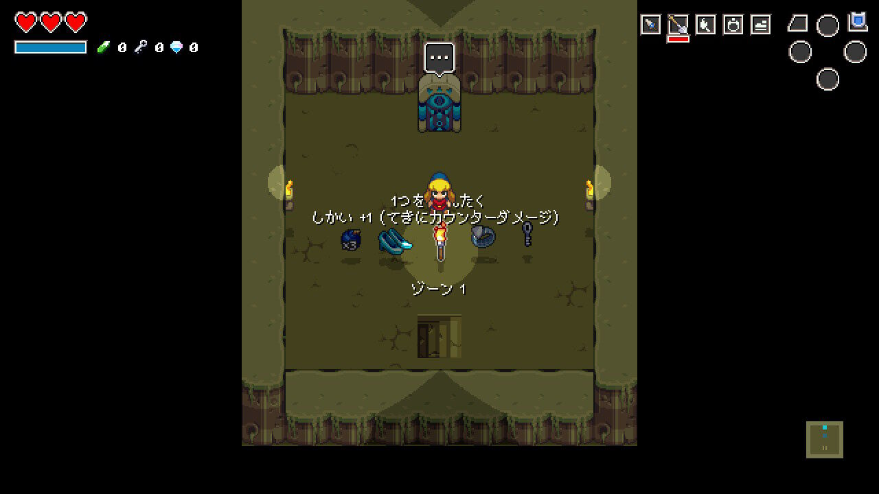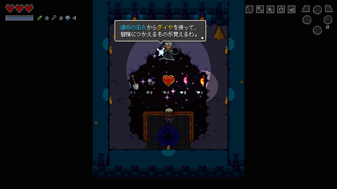 ちなみに今回プレイした「固定キャラクターモード」は死んだらスタート地点からやり直しになるけど、本編と同様、ダイヤを集めて「ハートの器」などを購入することで、より強い状態でゲームを開始できます