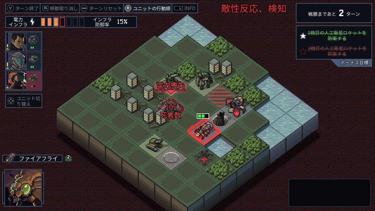 ・・・あー・・・えーっと・・・『Into The Breach』は近未来を舞台にしたシミュレーションRPG。ロボを操り、襲い来る敵生成物たちから人類を守るのが目的なんだけど・・・