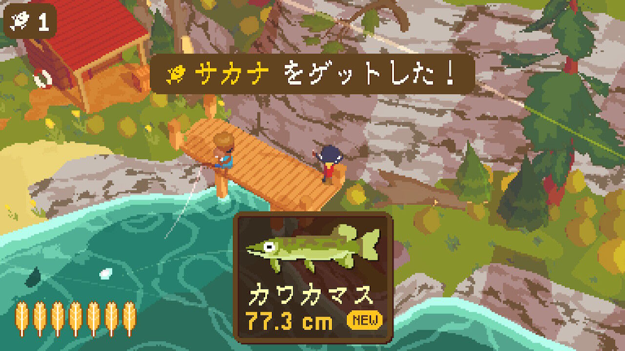 あと、釣りを楽しむこともできるよ。ちゃんと釣った魚のサイズも表示されるんだ