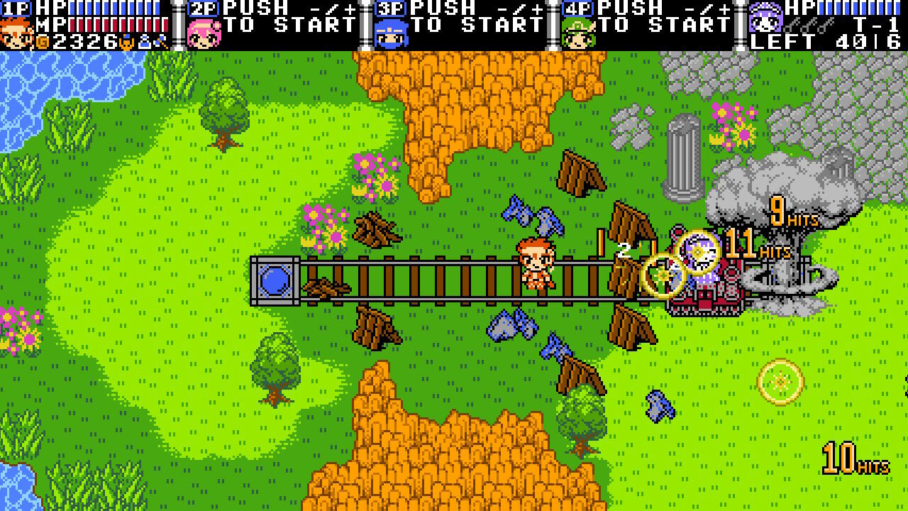 姫を城にのせることで、線路にそって移動していくので、プレイヤーは周囲から湧いてくる敵をガンガン攻撃して返り討ちにしていく・・・ってカンジ