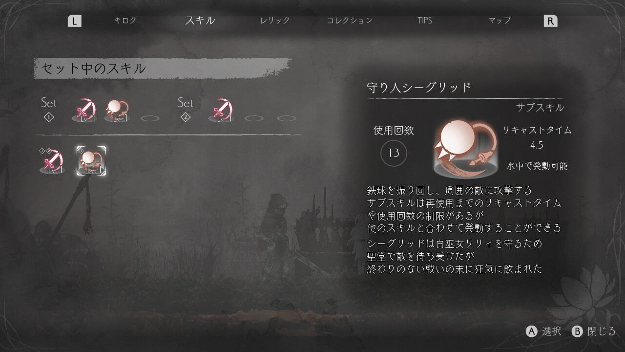 スキルは6つ(A、X、Yのセットを2つ切り替え可能)装着できるから、自分なりの組み合わせを見つける楽しみもあるな