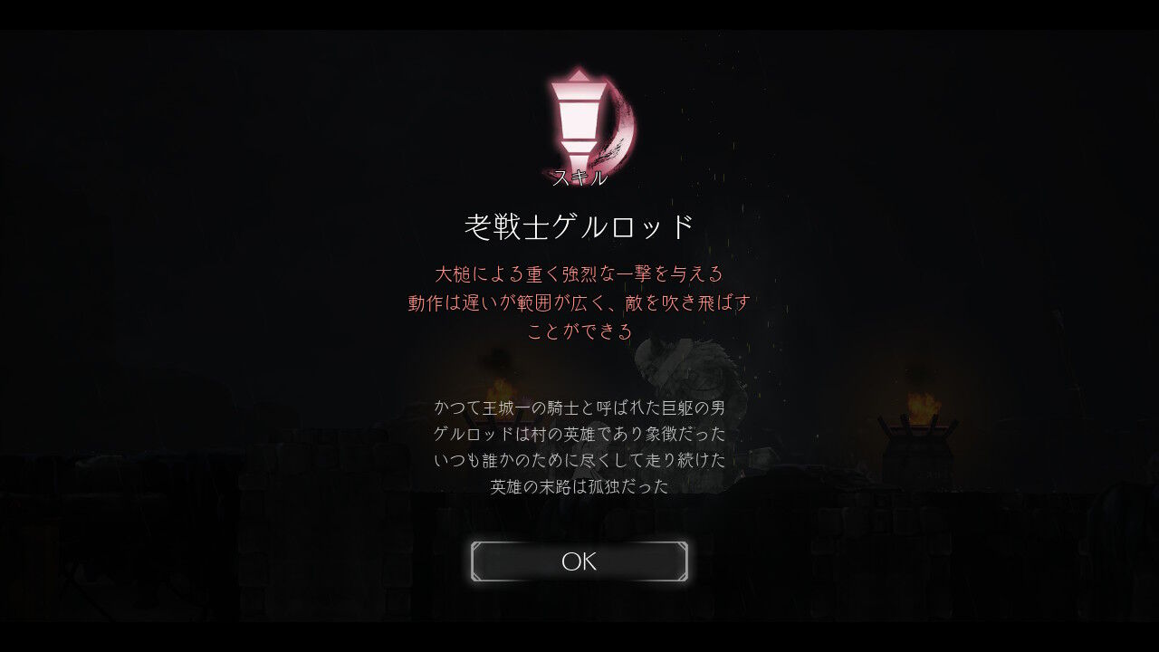 ちなみにゲルロッドのスキルは、漆黒の騎士と同じく無限に使用可能な通常攻撃タイプ。振りが遅い代わりに強烈な一撃を叩き込めるぞ!