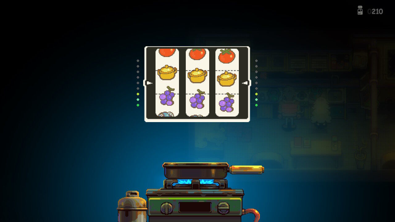 料理開始前にスロットが回って、良い出目なら料理の効果がアップするんですね