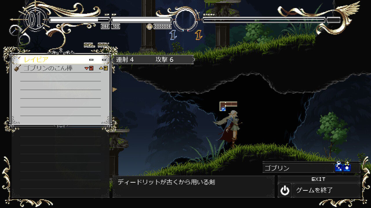 道中には色々な敵が出現するんだけど、時折敵が持つ武器をゲットすることができる。手に入れた武器は装備することができるよ
