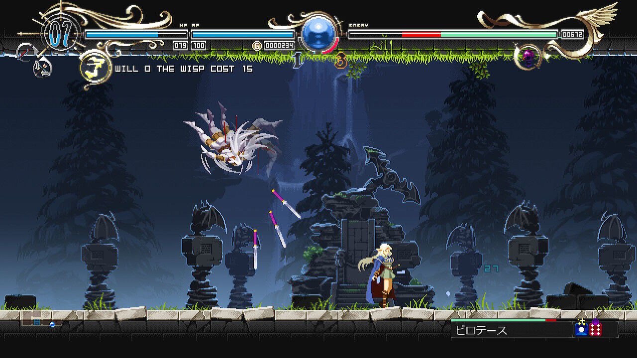 アクション要素は、ザックリと言ってしまえば『キャッスルヴァニア』風。攻撃やジャンプ、バックダッシュなどなど用意されているよ
