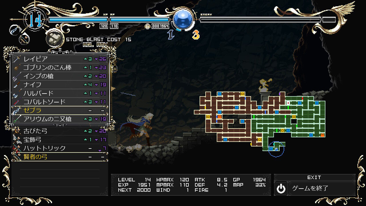 風の精霊を使役中は風ダメージが無効、炎の精霊を使役中は炎ダメージが無効・・・っていう、シューティングゲーム『斑鳩』を彷彿とさせるようなシステムがかなり面白いです