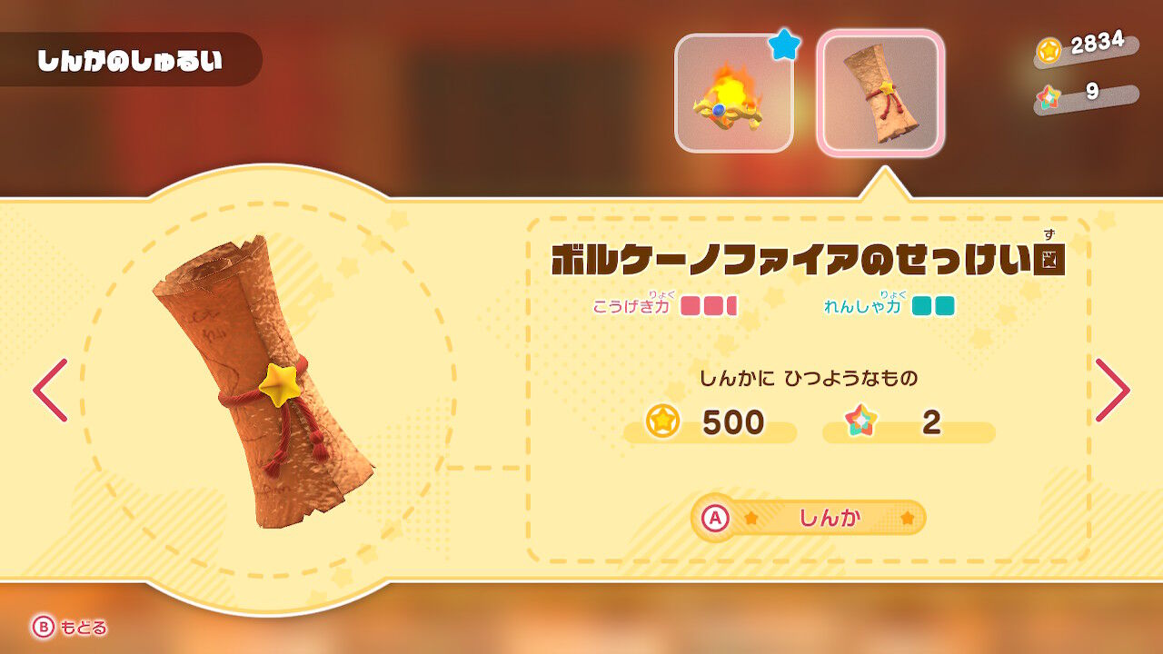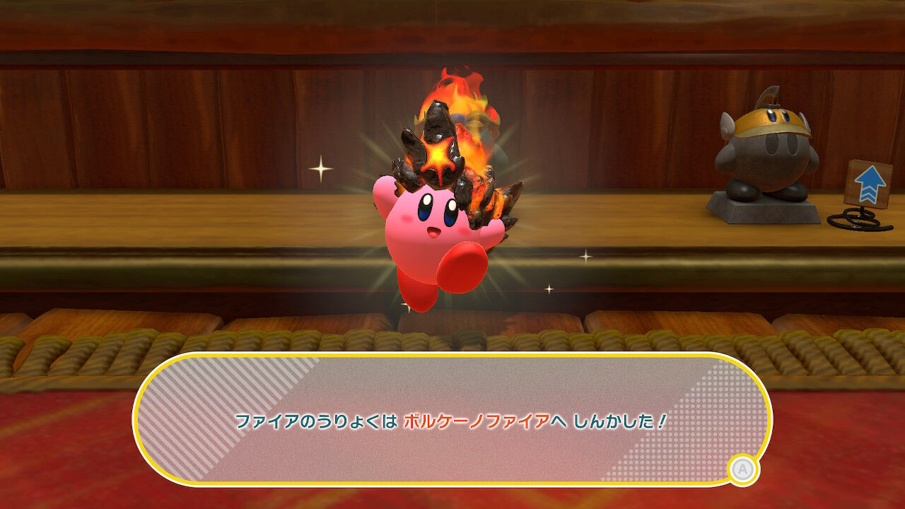さらに本作の目玉のひとつ・・・コピー能力をパワーアップする要素も解禁に!ファイアが「ボルケーノファイア」に進化じゃあ!