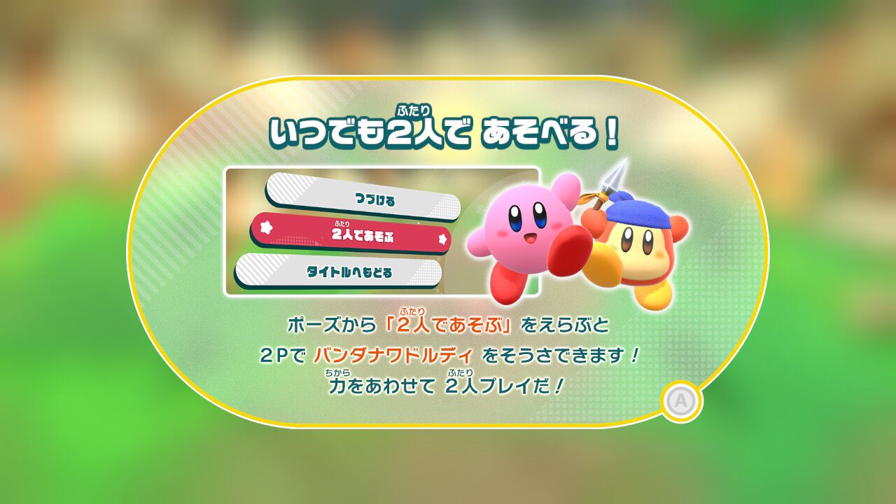そして本作はもちろん、2人プレイに対応!2プレイヤーは『カービィWii』以降おなじみのバンダナワドルディを使用できます