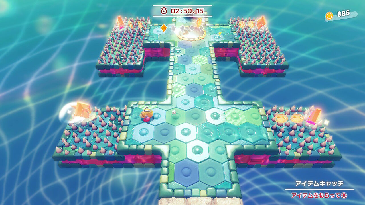 ほんとだ!体験版ではステージをメニューから選択する形式でしたね。製品版は近年の『マリオ』シリーズみたいに、マップを自由に動き回れる形式になってます