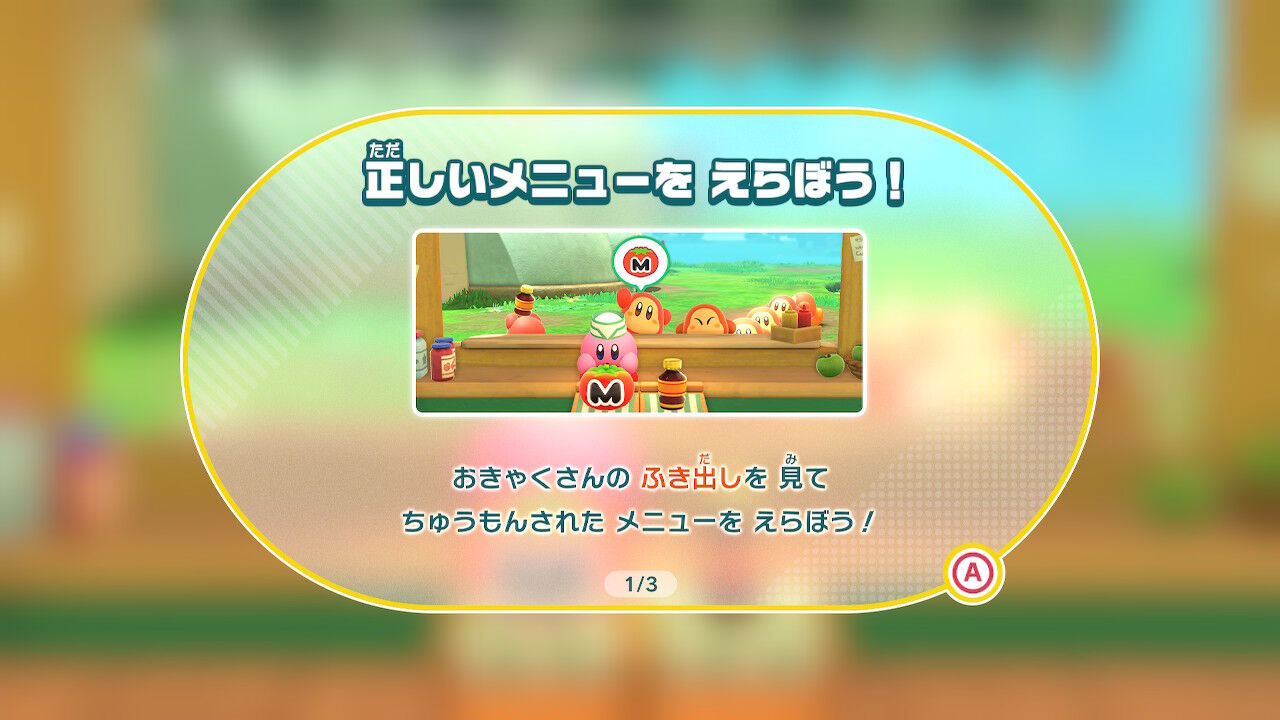 あとはミニゲームも!ワドルディたちのオーダーにあわせて、メニューを給仕していくヤツ!