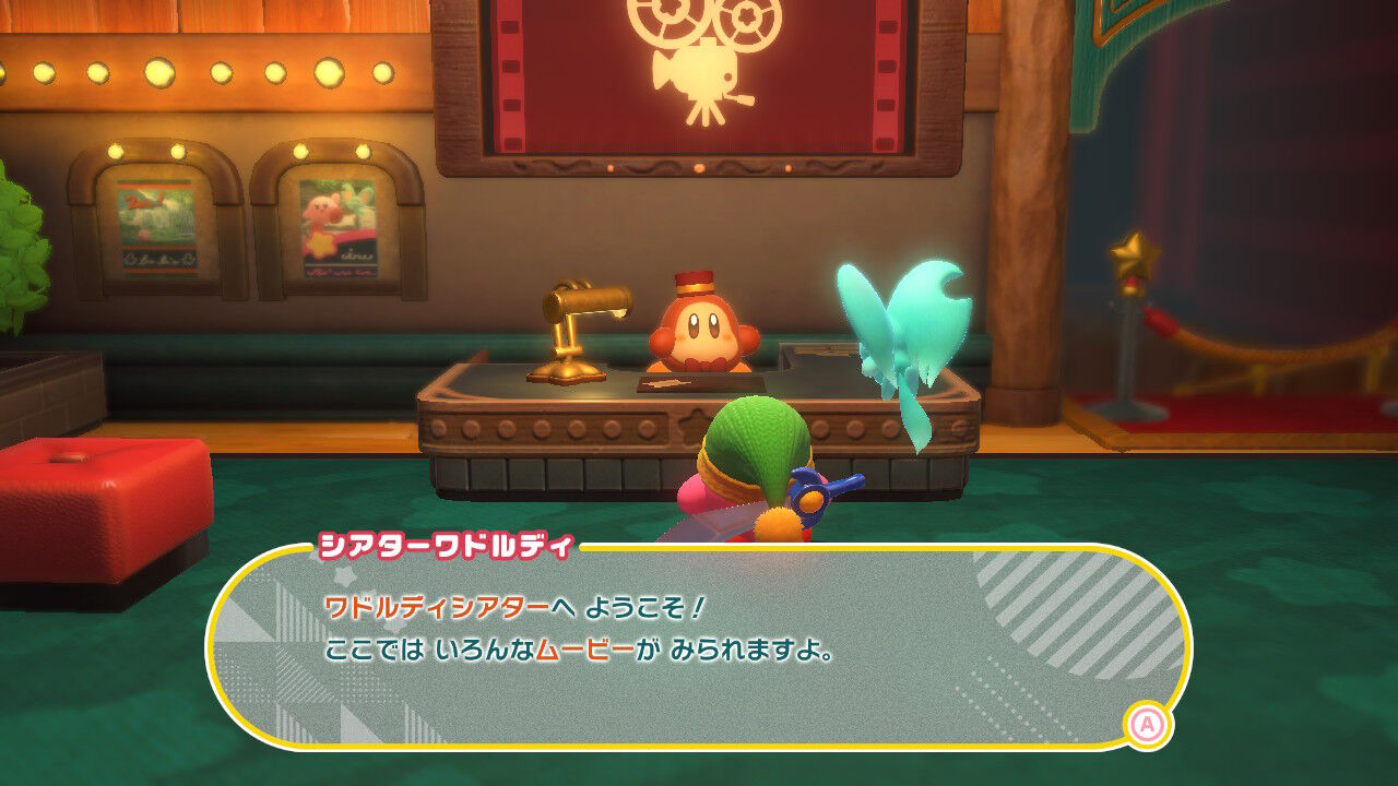 ワドルディを助けていくことで、村に新しい施設もオープンしていくんだ。こちらは最初に登場する「ワドルディシアター」。ゲーム中のムービーを鑑賞できるぞ