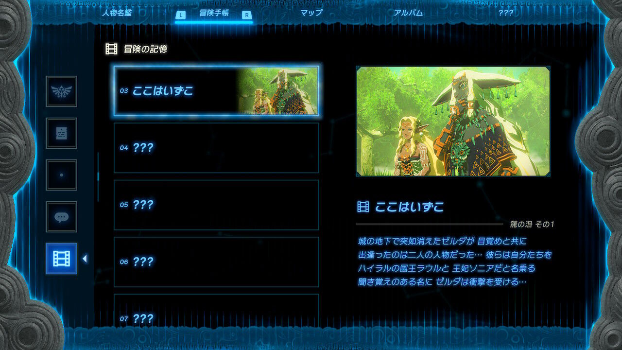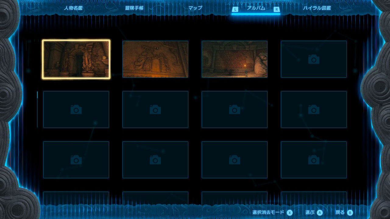 そういえばオープニングシーンで、ゼルダ姫が遺跡の写真を撮影してたよな。その機能が有効化されたってカンジか