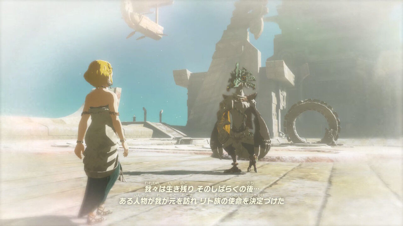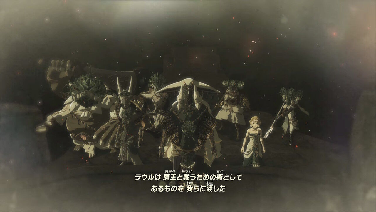 さっき「地上絵」でみたムービーとあわせて推察するに・・・ゼルダは過去の世界にワープした後、なんやかんやあって「時の賢者」としてラウルたちと一緒に戦ったってわけですね