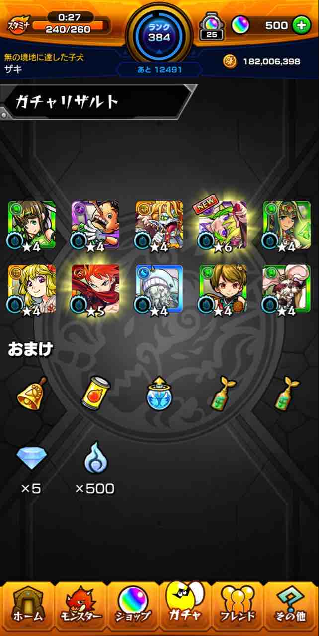 ●100連目(通算消費オーブ:500個)