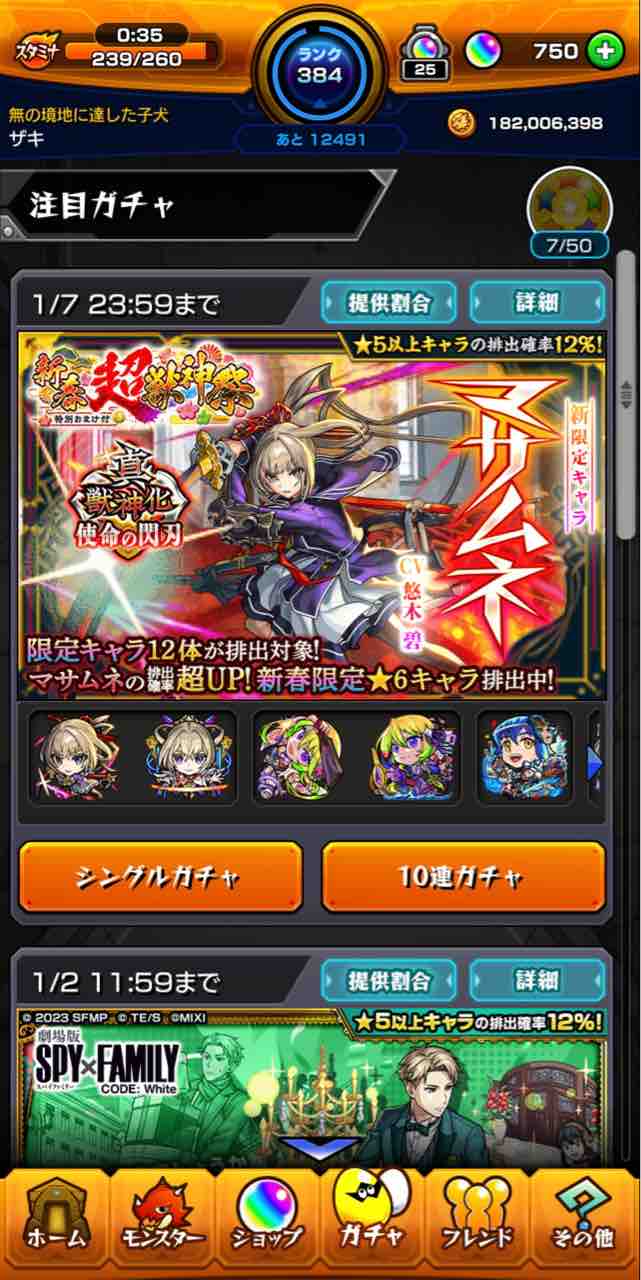 (´・ω・`;)「直前にやってた“スパイファミリー”コラボガチャで、何気にアーニャ引いてるじゃん!」