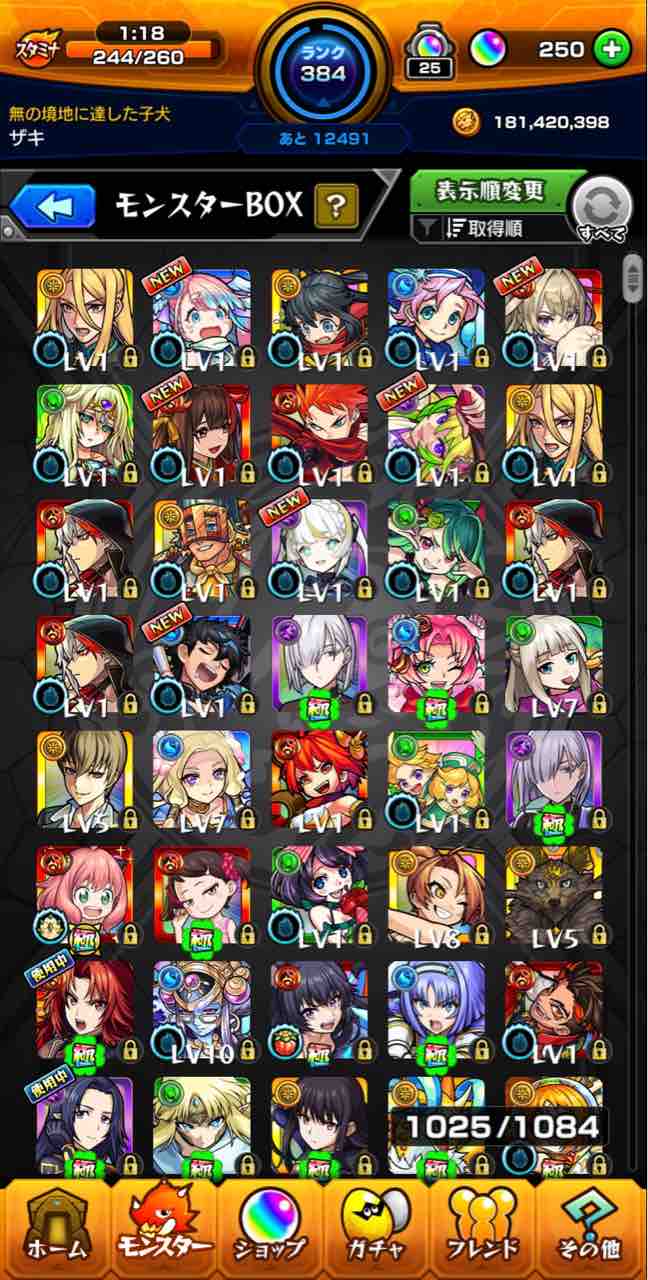 彡(-)(-)「その代わりに、直後に撮影した“取得順”に並び替えたモンスターBOXをご覧ください・・・」