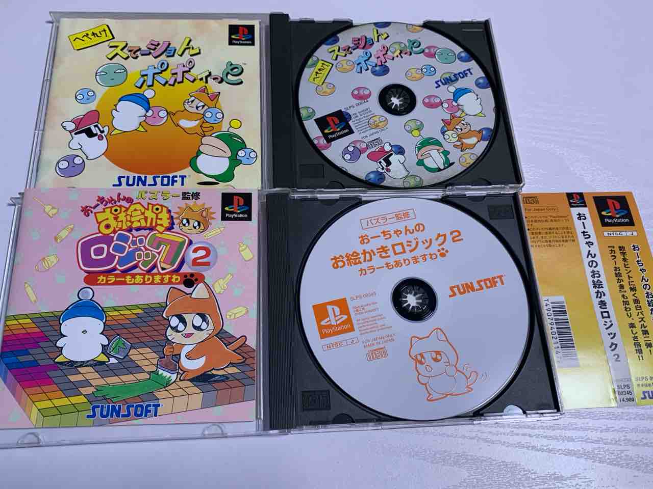 ・・・気を取り直して、ジャンクコーナーで売られてた2本を。PS『へべれけ スてーショん ポポイっと』と『おーちゃんのお絵かきロジック2 カラーもありますわ』。どちらも300円(税込)だったよ