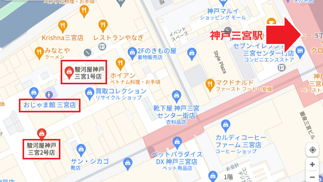 なぜ急に神戸三宮なのかと言うと・・・実はこの駅の近くには、「駿河屋」が2店舗、「おじゃま館」が1店舗あるんだ。これはレトロゲーム好きとして見逃せないと思いまして