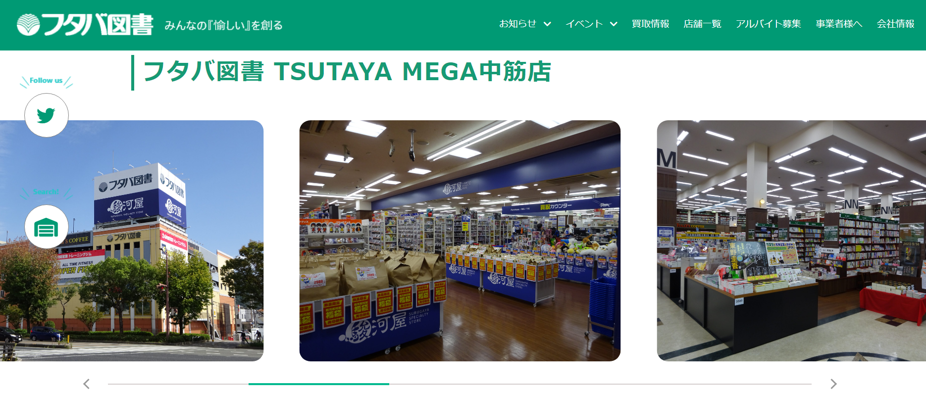 ・・・残念ながら「フタバ図書 TSUTAYA MEGA中筋店」では、中古本の売り場を見つけられませんでした。公式サイトにはちゃんと「本(新品・中古)」の表記があるのに・・・
