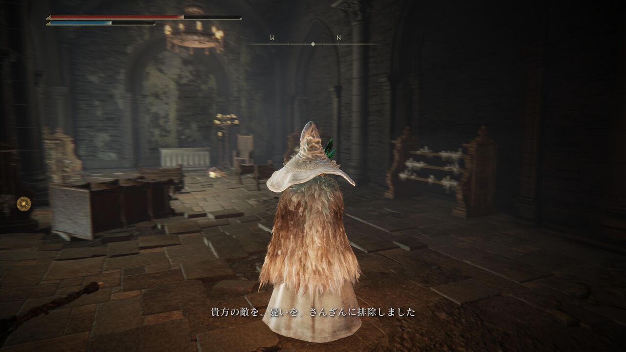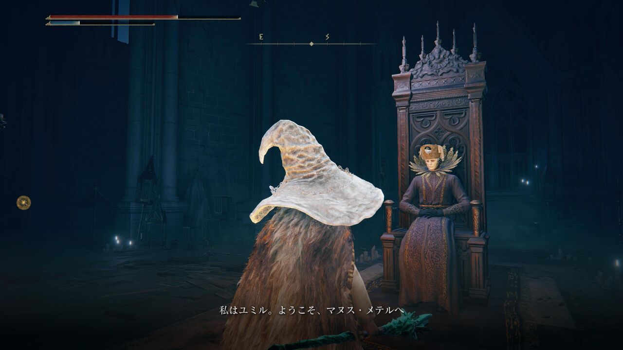 「マヌス・メテルの大教会」でユミルって人と出会いました。従者っぽい謎の黒騎士もいるね