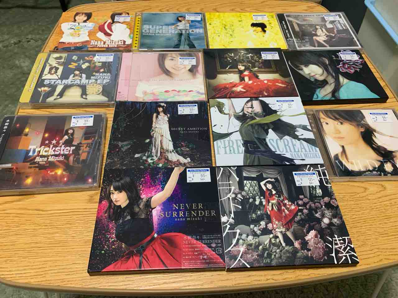 実は・・・古いCDが1枚55円で売られていまして・・・そういえば昔、水樹奈々が好きだったなぁ・・・とぼんやり思っていたら、気付いたらカゴにCDが14枚入ってました