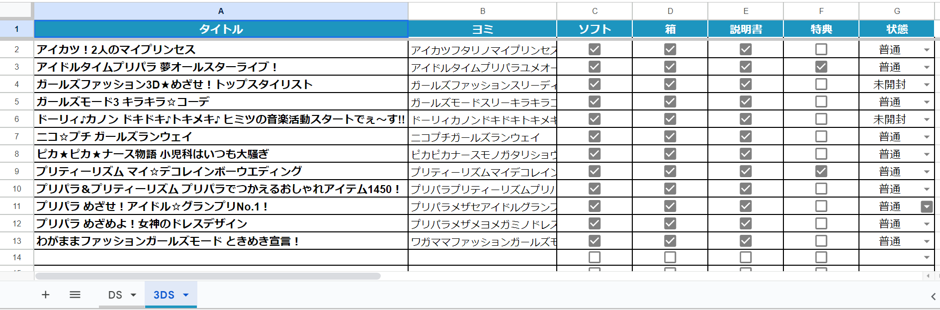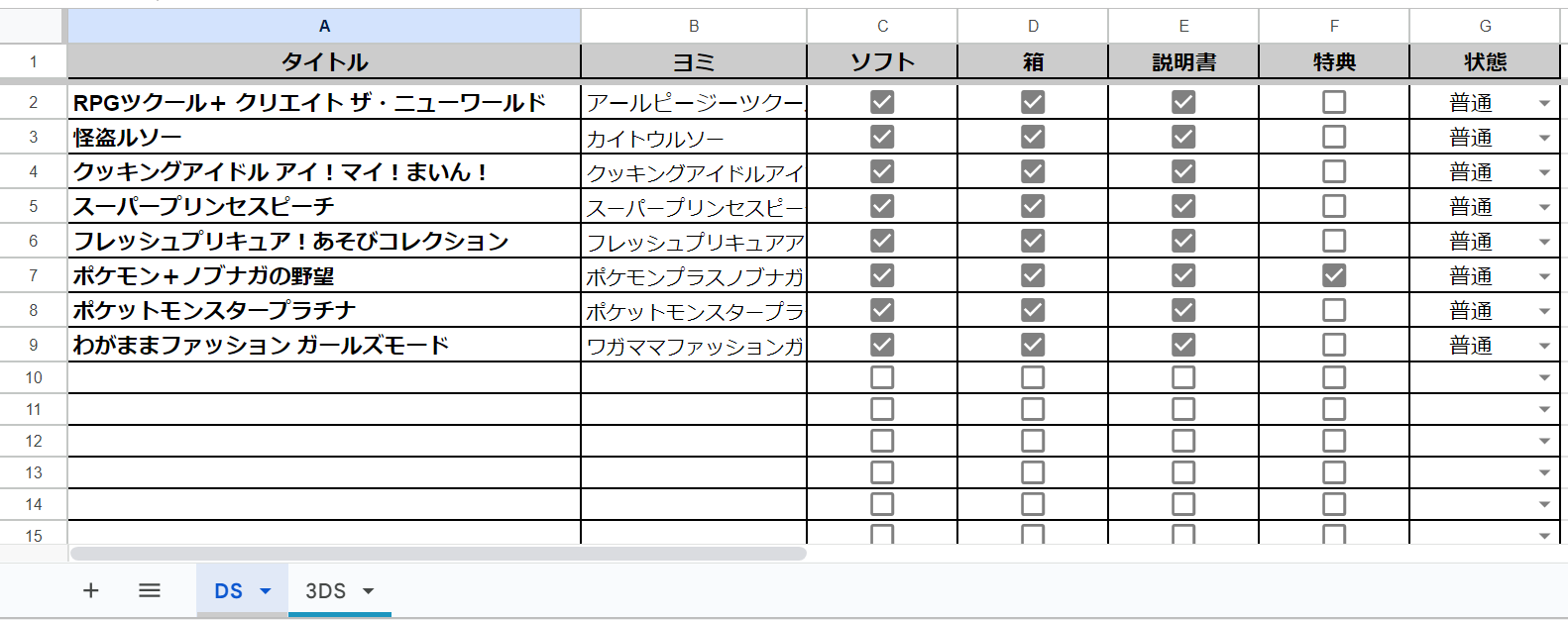 ・・・ムカついたから、これを機にDSと3DSのリストもちゃんと作ることにしました。実家に帰省したら、他の所持済みソフトもちゃんと記録しないとね・・・