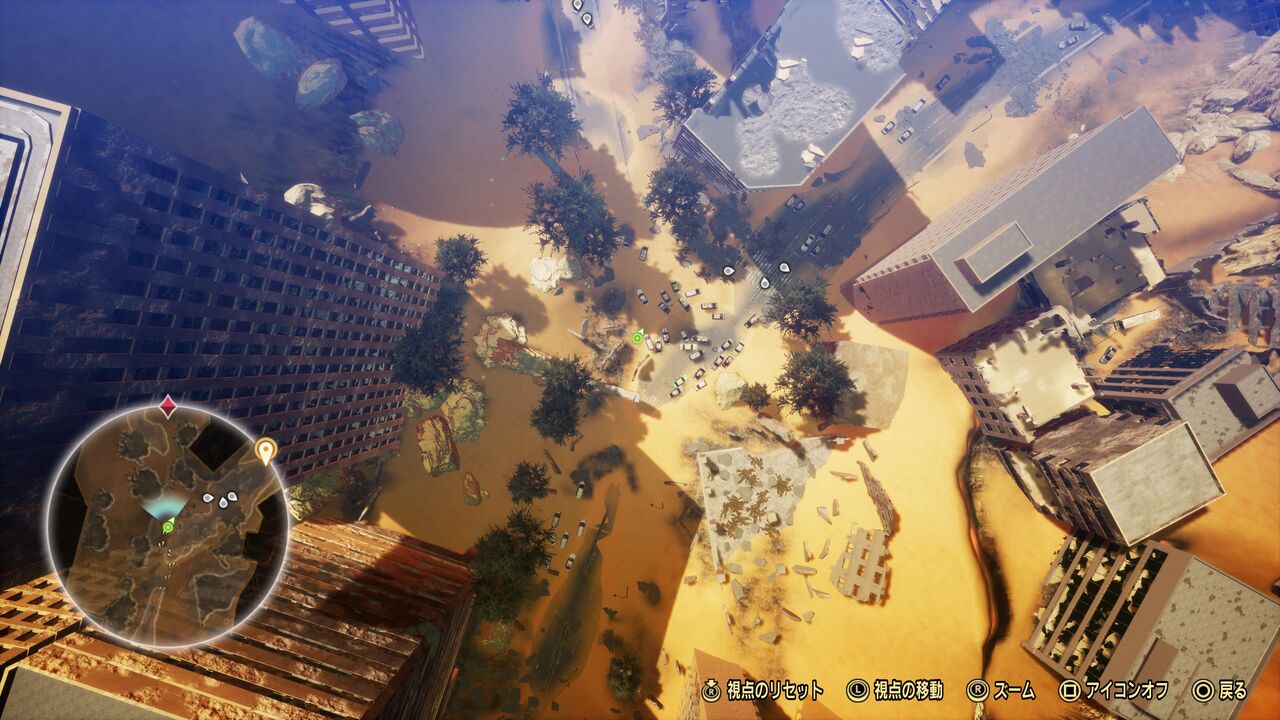 ドローンみたいな視点ですね