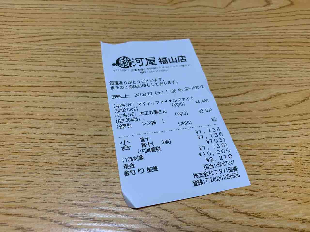 さて、今回の購入品はここまで。最後に合計金額、発表するよ~