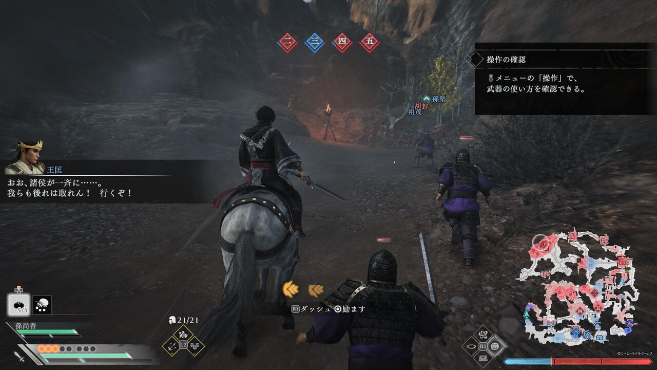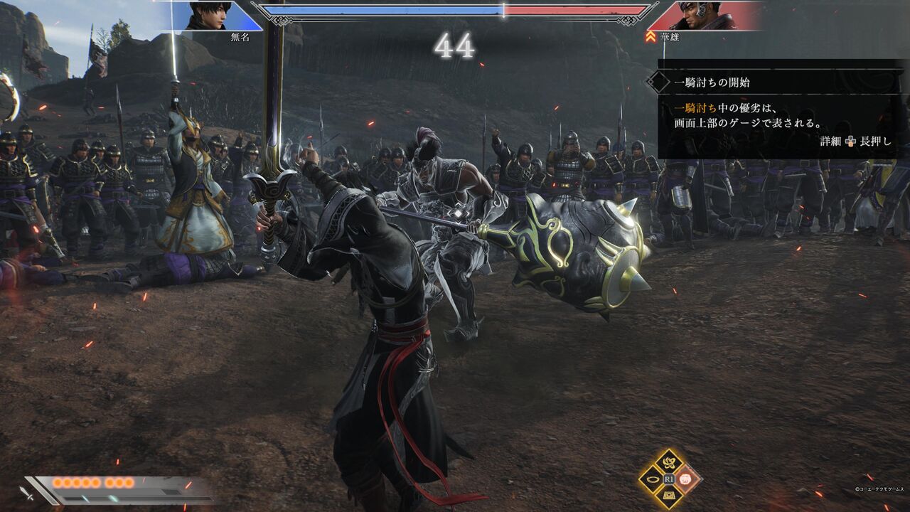 敵武将の攻撃はR1とボタンの組み合わせによる技で体勢を崩せたりなど、色々とやれるのう
