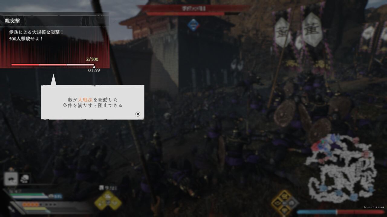 一定時間中に決められた数の敵兵を倒さないと戦況が不利になる・・・みたいなイベントもありますね