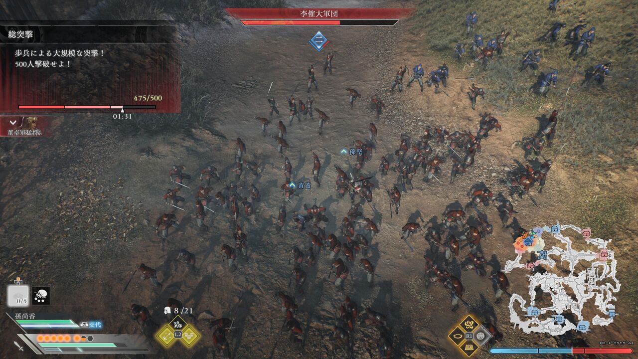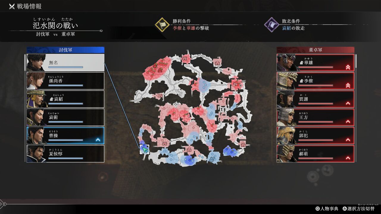 今回配信された体験版では、「汜水関の戦い」をプレイ可能。“名族”さんこと袁紹率いる連合軍 VS 董卓軍の戦いだね