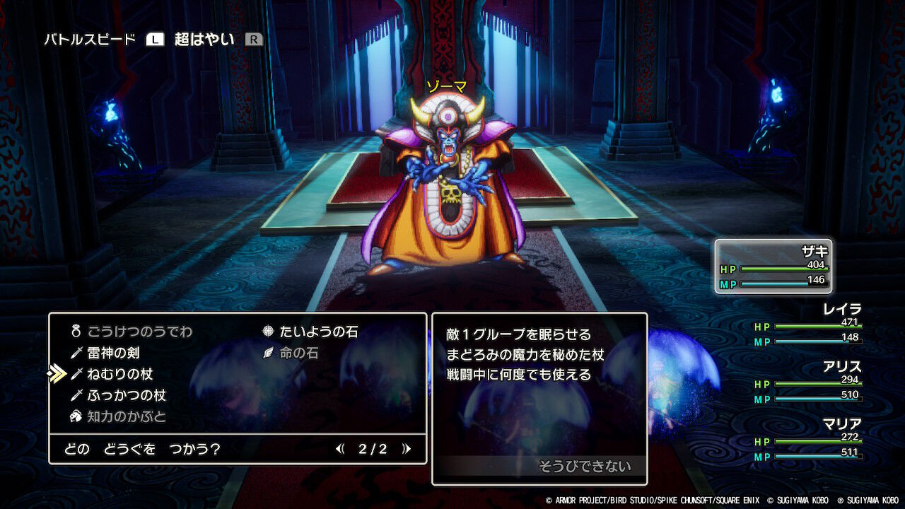 バラモス戦と同じ流れになるけど・・・「まものよび」が使えない主人公は「ねむりの杖」でゾーマを眠らす要員です