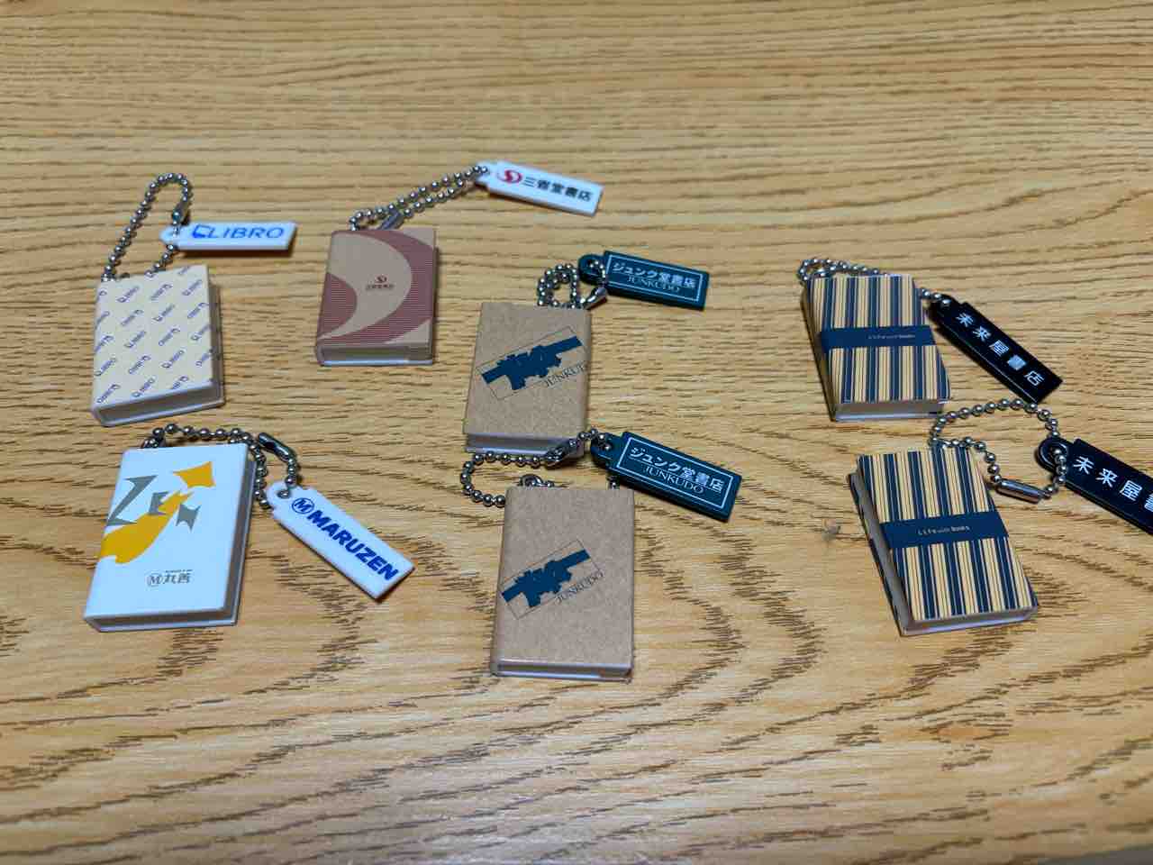 ガチャガチャつながりでもうひとつ。有名書店のブックチャームも引きました。6種あるんだけど、ブックファースト以外は集められたよ