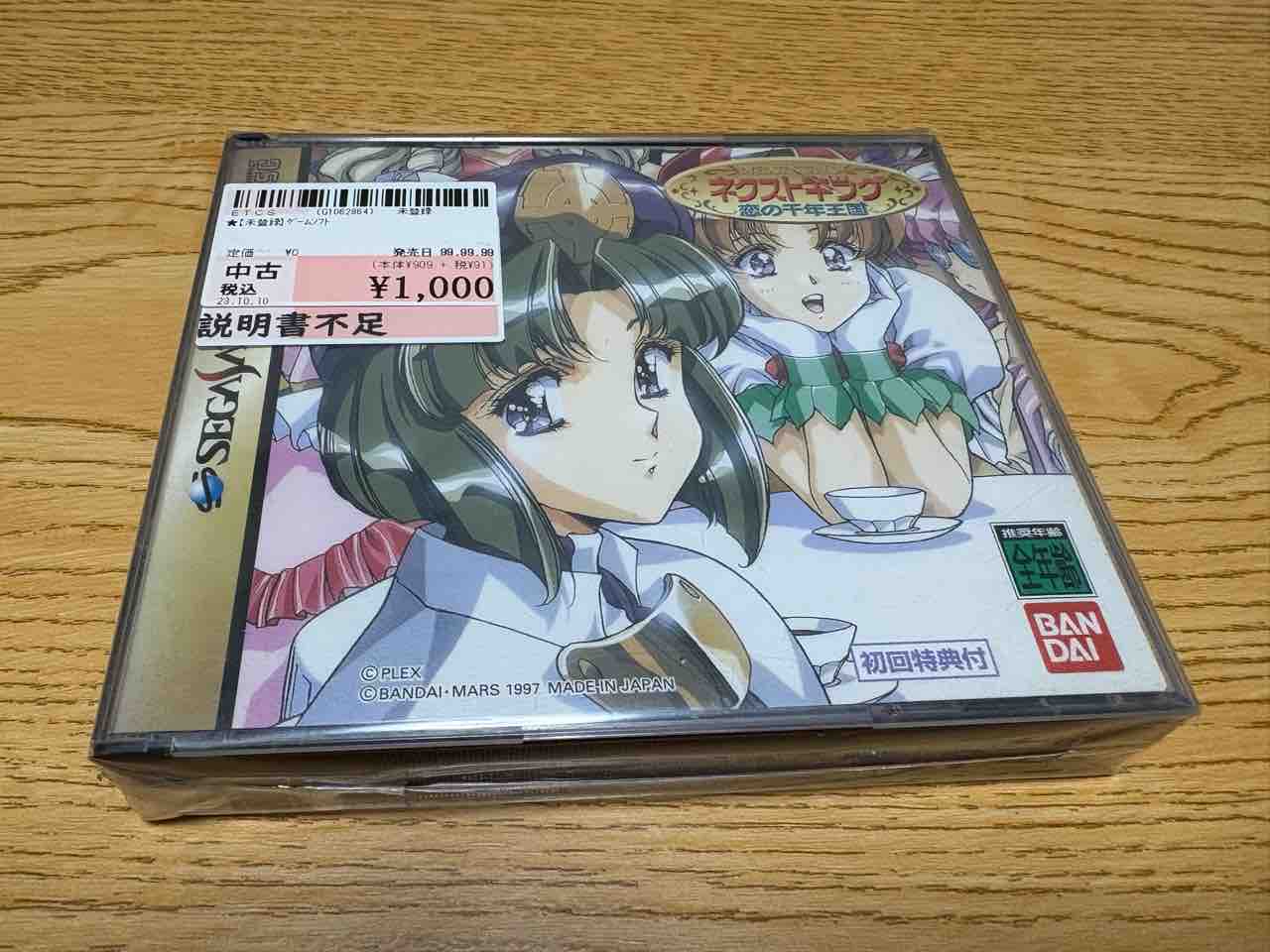 続いては駿河屋 福山店・・・サターン『ネクストキング 恋の千年王国』を買ったんだけど・・・「説明書不足」の表記を思いっきり見逃していて、説明書が入っていないことに帰宅後に気付きました・・・