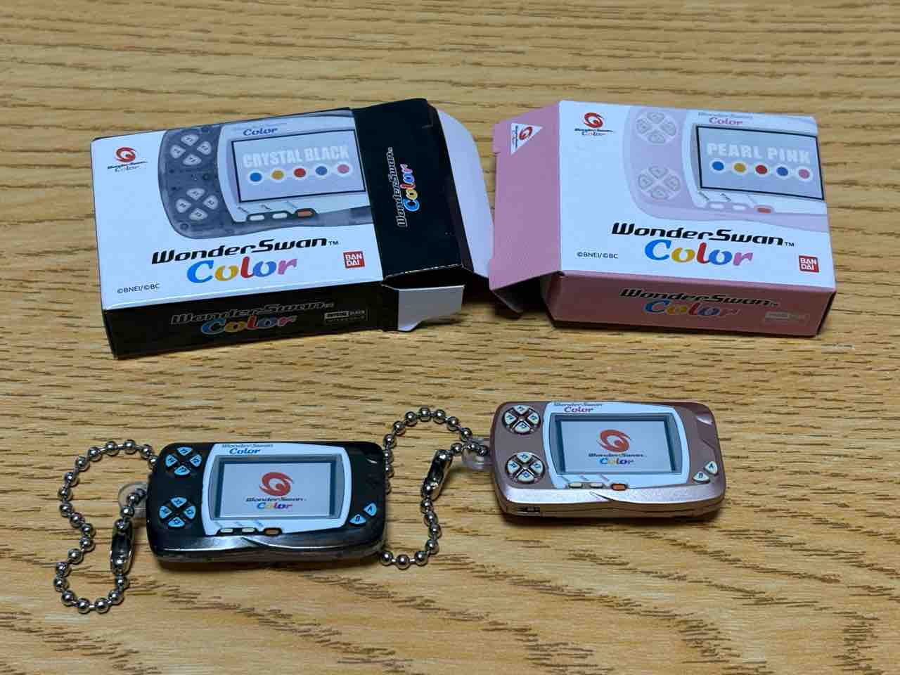ミニチュア版ワンダースワンカラーのガチャガチャがあったので、2回分引いてみました。ちゃんとソフトの着脱もできるんだよ