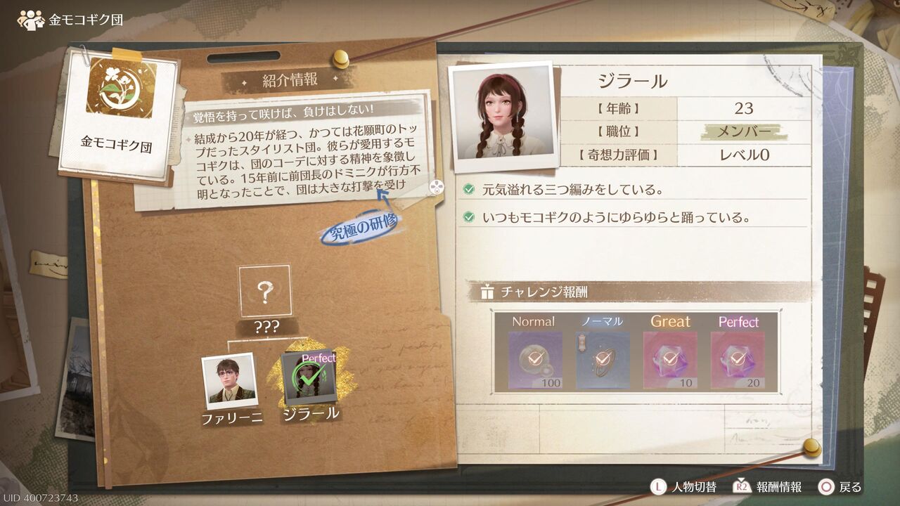 各地に色々な勢力がいるので、お題に沿って自身の持つ衣装の組み合わせによってバトルするんだ。衣装をレベルアップさせないとなかなか勝てないライバルも多いんだよね