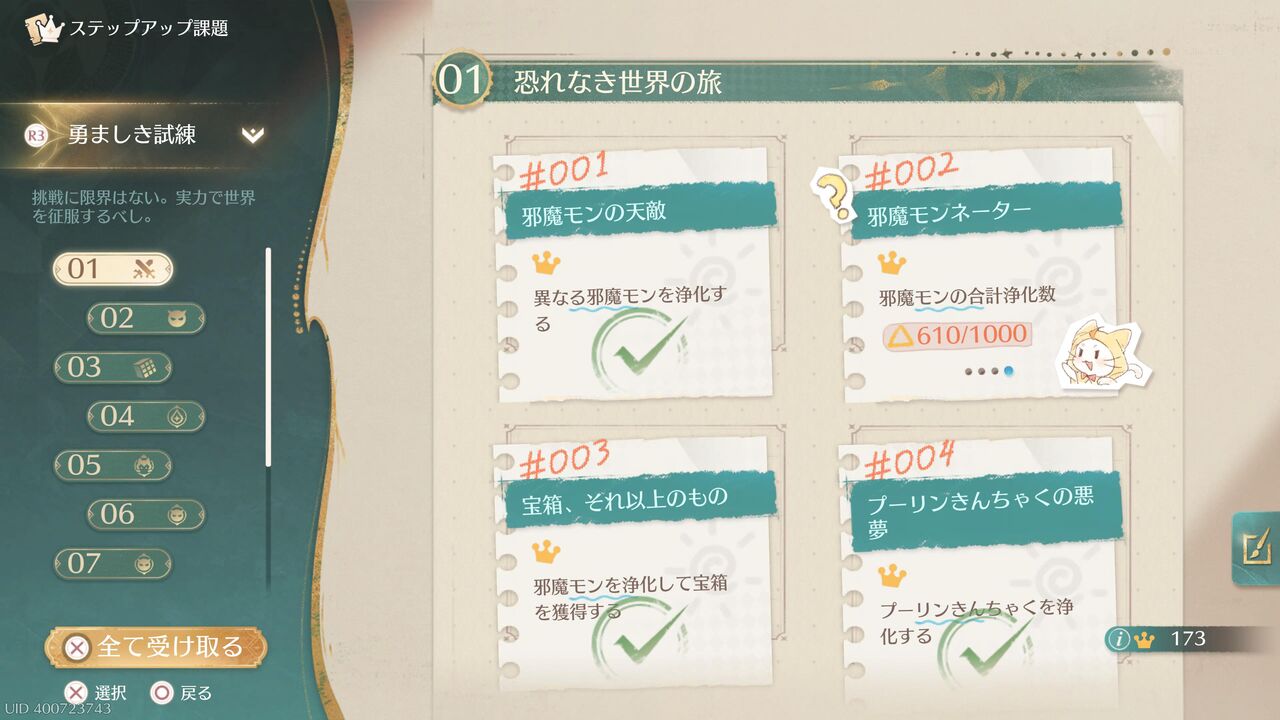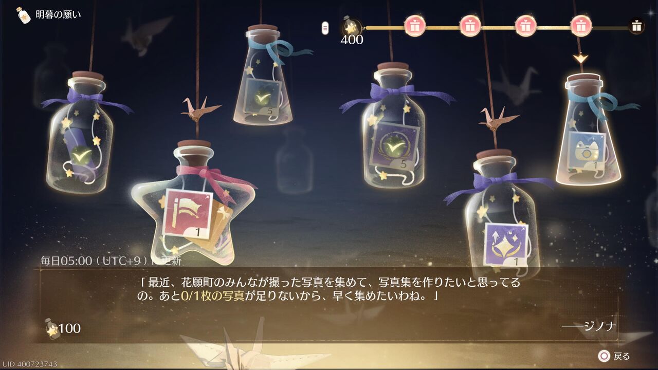 カメラで写真を撮るとか、植物をちょいちょい集めるとか、その気になれば5分で全部終わるような簡単なものばっかだから、ぜんっゼン無理なく楽しめてるよ!