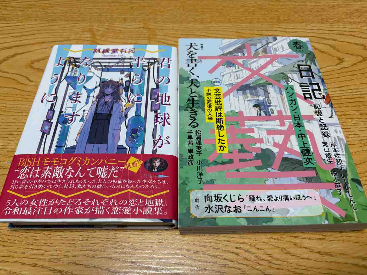 この中で特筆すべきは・・・ずっと探していた斜線堂有紀さんの「君の地球が平らになりますように」がようやく発見できたので新品で購入したのと、「文藝」の最新号かな