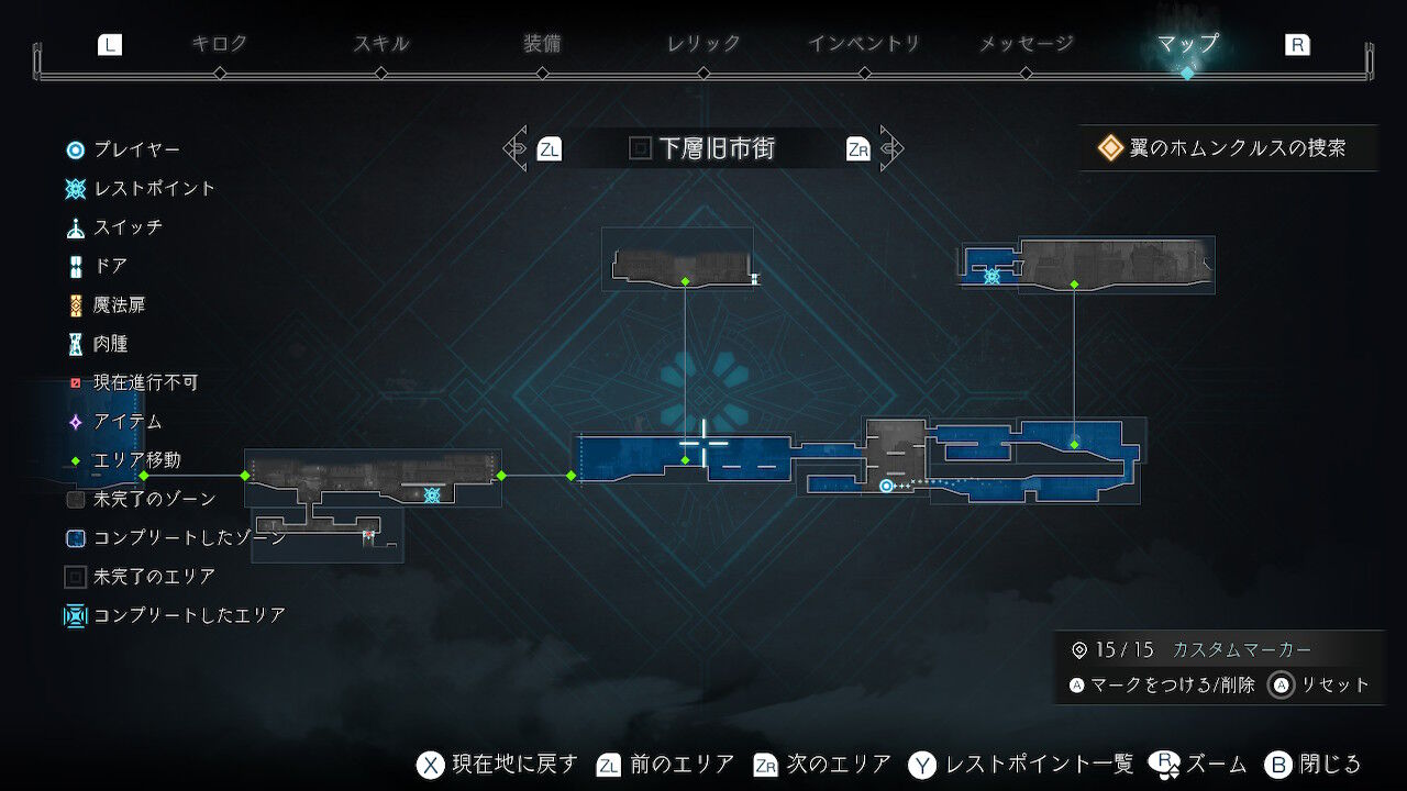 アイテムやらの隠し要素を取りつくしたエリアはマップに色が付くのが便利ですよね。『メトロイド』シリーズみたいで