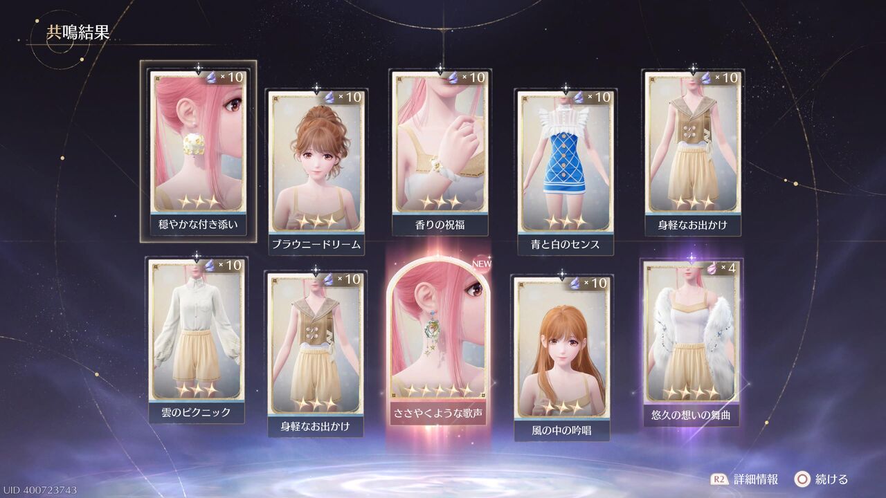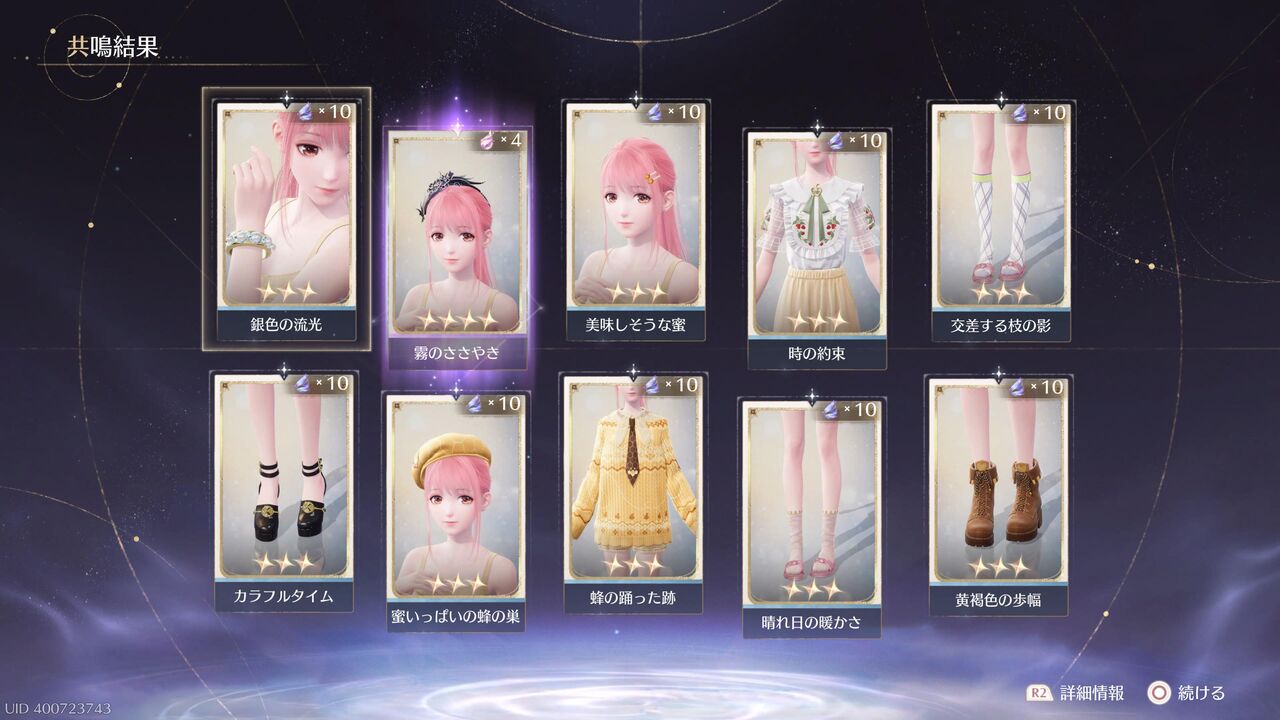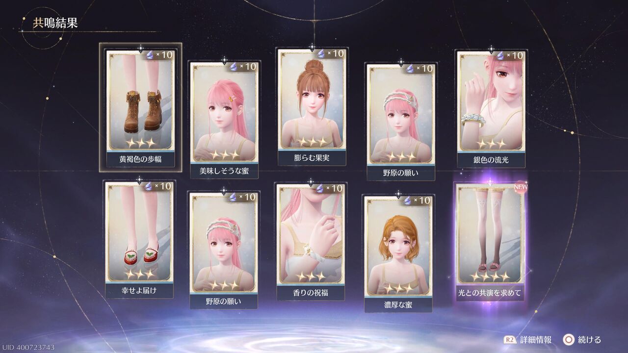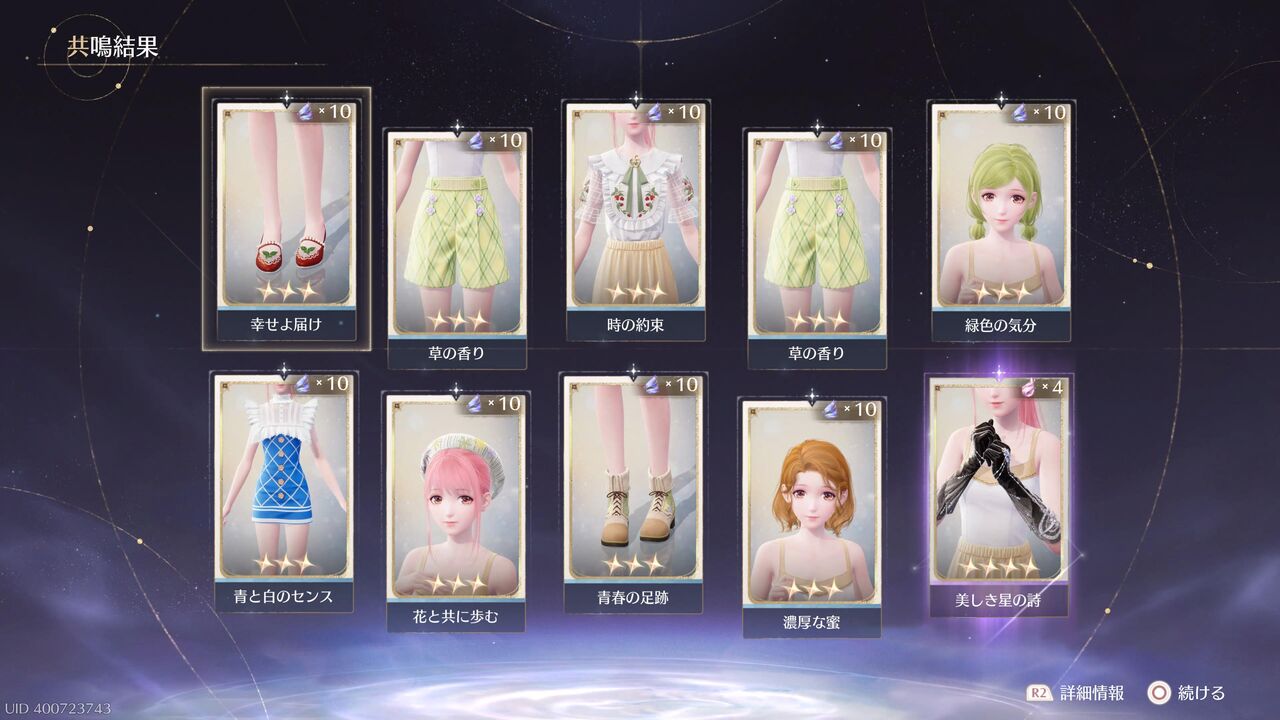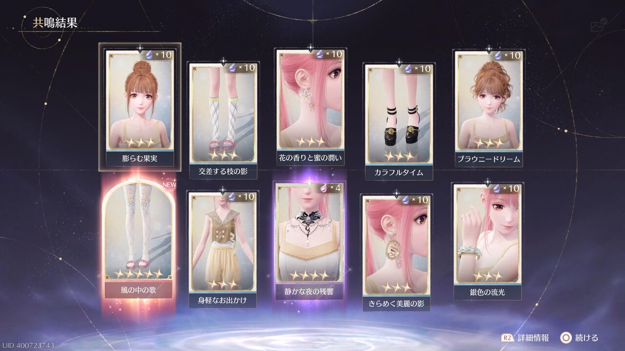 あと10連すると衣装進化用の素材が手に入るが、とりあえずここで終わっておこうか・・・